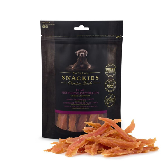 Feine Snacks mit Huhn sind geeignet für Welpen, erwachsene Hunde sowie Hundesenioren. Wenn ihre Fellnase einen empfindlichen Magen hat oder Schonkost bekommt, sind unsere Hühnerfleischstreifen eine leicht bekömmliche Belohnung und ideale Ergänzung.