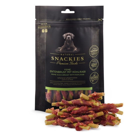 Entenbrust mit Kohlrabi: Rohprotein 30%, Rohfett 5%, Rohasche 4%, Rohfaser 1,7%, Feuchtigkeit 16%