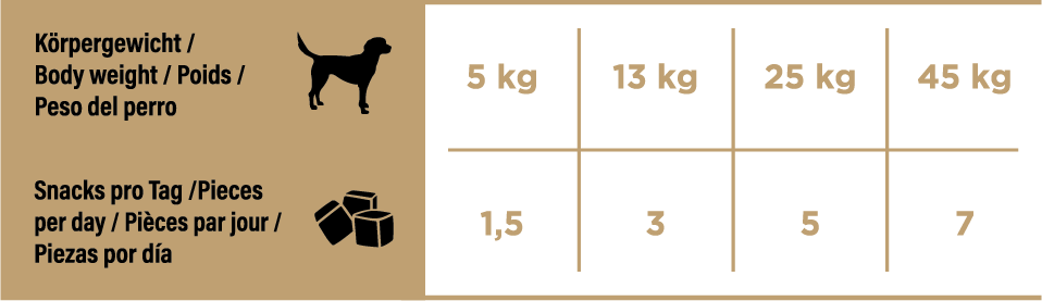Als Belohnung oder Snack zwischen den Mahlzeiten füttern. Bitte immer ausreichend Trinkwasser bereitstellen.