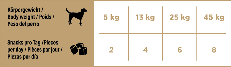 Als Belohnung oder Snack zwischen den Mahlzeiten füttern. Bitte immer ausreichend Trinkwasser bereitstellen.